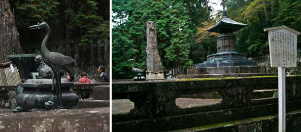 Lá dentro também tinha um mini museu da dinastia Tokugawa, já que o Toshogu foi construído em homenagem a Tokugawa Iyeasu, o primeiro Shogun. O santuário foi construído pelo seu filho e era composto por várias construções montanha acima. No topo ficava o seu túmulo, com a curiosa estátua de uma garça pousada em uma tartaruga, simbolizando a união entre a força e a leveza.