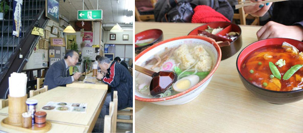 A cidade é uma gracinha e muito aconchegante. Já era quase hora do almoço (levou umas boas 3 horas até chegar), então antes de ir visitar os templos paramos para comer a especialidade da região: o Yuba Gozen, uma espécie de “PF” (palavras do Banshee) composto por um lámen (mais conhecido com “miojo”), uma tigela de arroz com camarões e um molho agridoce, misoshiru (a sopinha unipresente) e uns aperitivos, mas o principal era que tudo tinha a Yuba, a “pelinha” do tofu (algo parecido como uma nata de leite, só que mais consistente).
