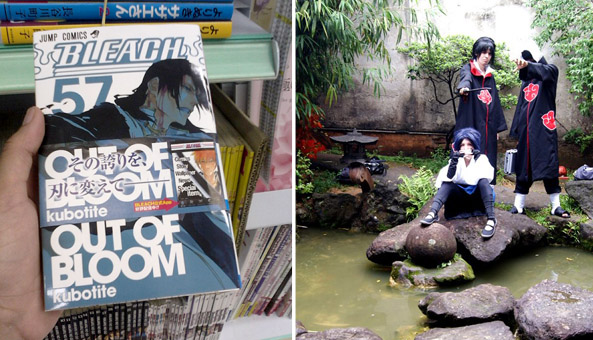 Agora sim, o tópico que você provavelmente estava esperando! A Liberdade é quase como um grande evento de anime, não só pelas lojas: aqui é comum ver cosplayers andando pelas ruas. As lojas são recheadas de artigos da cultura otaku, além de coisas que não se vê em eventos comuns, como edições japonesas originais das séries. Esse mangá de Bleach eu comprei na Livraria Sol. No Sogo, você encontra figure actions, acessórios e objetos de todo tipo de anime.